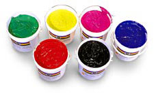 The range of colours includes: 16 ready to mix colours, colours for 4 colour process, fluorescent colours with coverage, gold and silver, glitter and metal, additives and cutting bases. |